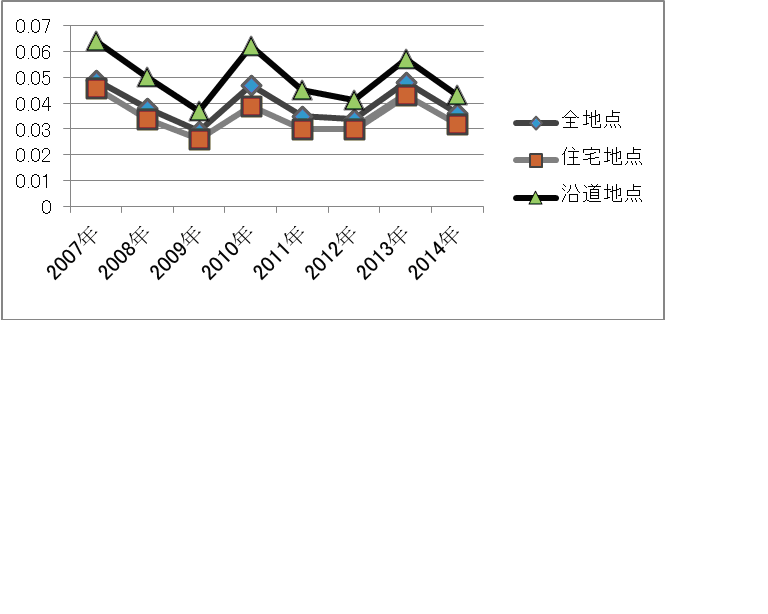 | 住宅地 | 平均濃度 | 0.014 | 0.012 | 0.011 | 0.016 | 0.021 | 0.018 |